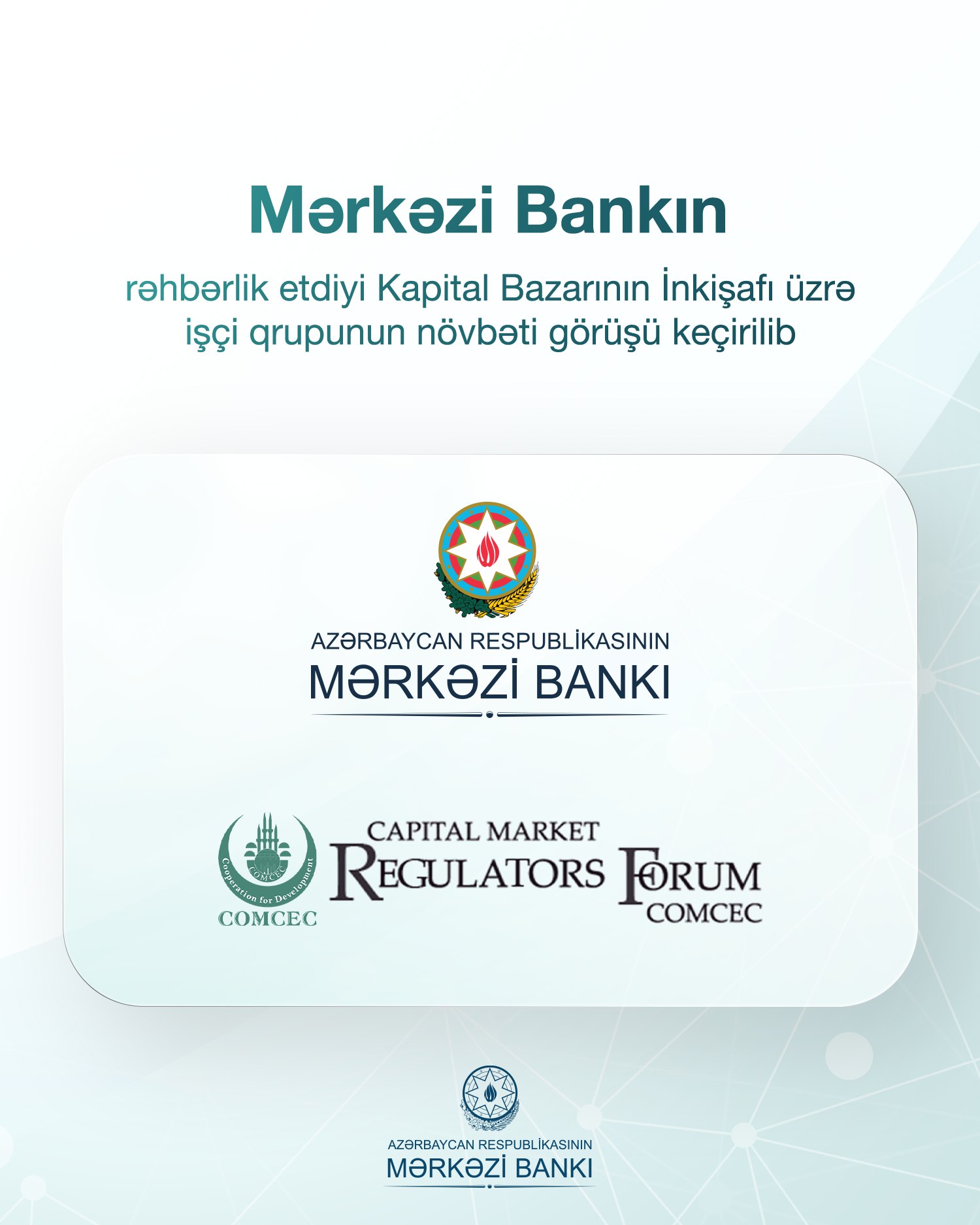 Azərbaycan Respublikasının Mərkəzi Bankı (AMB) növbəlilik prinsipinə əsasən, İslam Əməkdaşlıq Təşkilatının (İƏT) İqtisadi və Ticarət Əməkdaşlığı üzrə Daimi Komitəsinin (COMCEC) Kapital Bazarı Tənzimləyiciləri Forumunun Kapital Bazarının İnkişafı üzrə işçi qrupuna 2025-ci ildə də sədrlik edəcək.