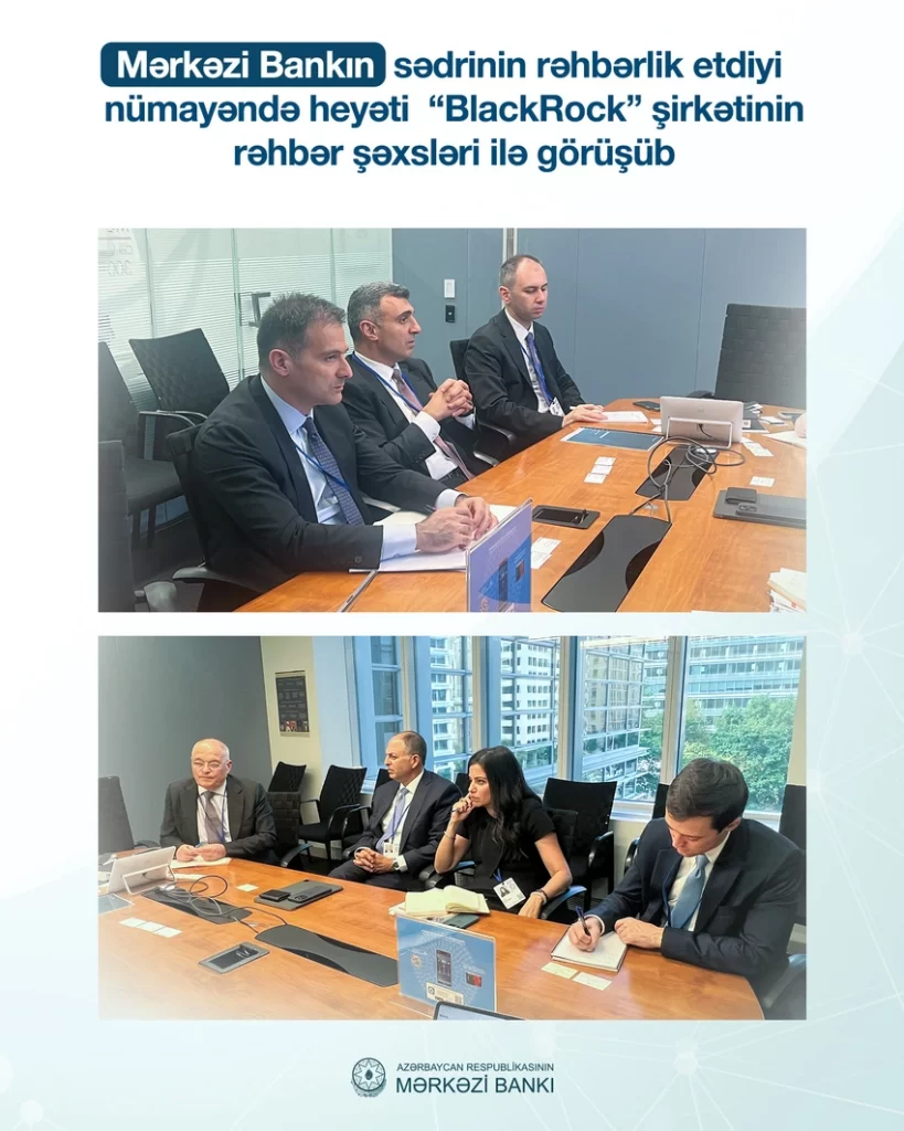 Azərbaycan Mərkəzi Bankının (AMB) sədri Taleh Kazimovun rəhbərlik etdiyi nümayəndə heyəti ABŞ-nin paytaxtı Vaşinqtona işgüzar səfər çərçivəsində “BlackRock” şirkətinin baş idarəçi direktoru və qlobal tərəfdaşlar ofisinin həmsədri Coud Abdel Macidlə görüşüb.