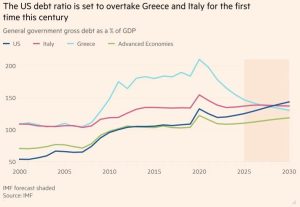 Beynəlxalq Valyuta Fondunun (BVF) proproqnozlarına görə, ABŞ-ın dövlət borcu bu əsrdə ilk dəfə olaraq İtaliya və Yunanıstanın borc səviyyəsini keçəcək, bu da Amerikanın dövlət maliyyəsində ciddi problemlər olduğunu göstərir.