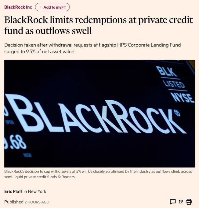GDP xəbər verir ki, BlackRock özünün özəl kredit fondundan 1,2 milyard dollar həcmində vəsaitin çıxarılması ilə bağlı müraciətləri dondurub. Aktivləri 26 milyard dollar olan bu fondun investorları vəsaitlərinin 9,3%-ni geri çəkmək istəyiblər.