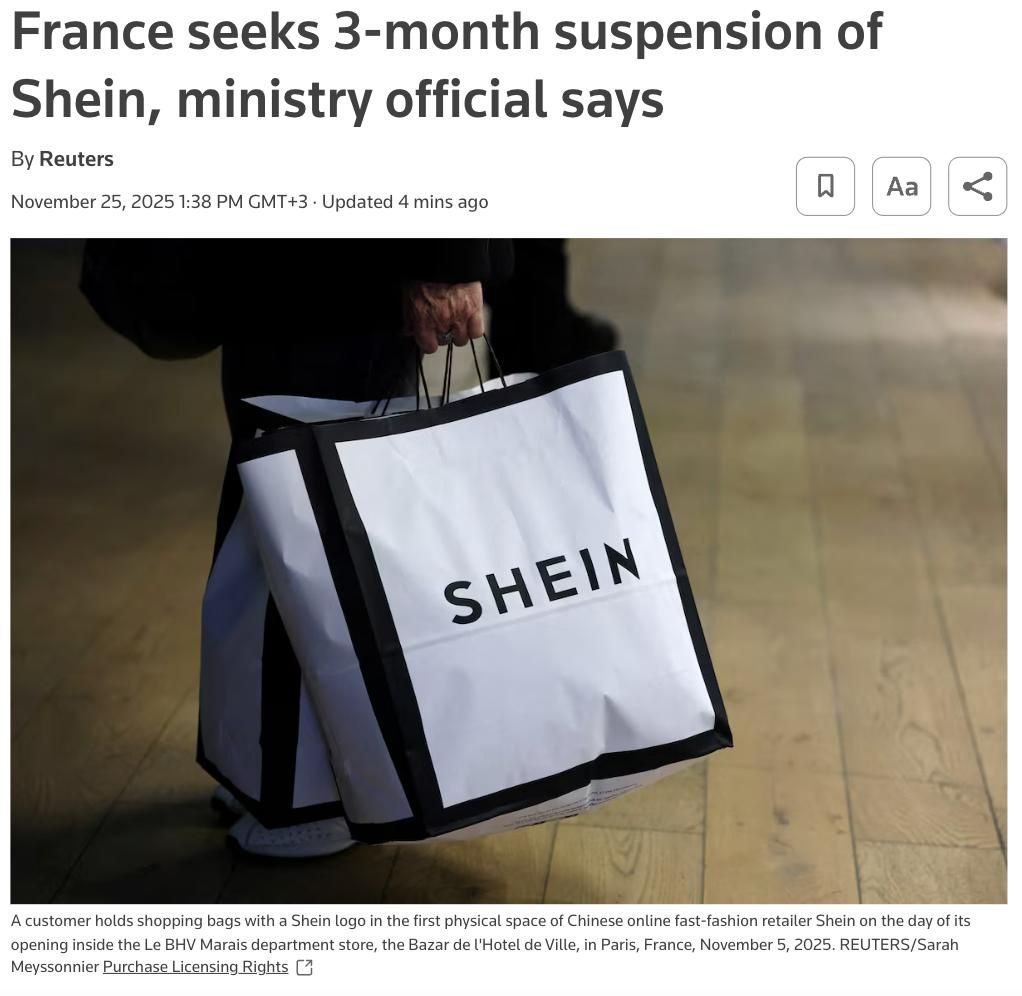 Fransa Çin marketpleysi Shein-in fəaliyyətini qadağan edib.