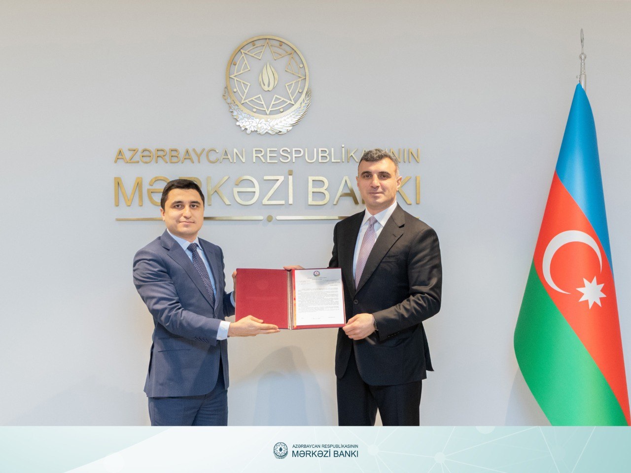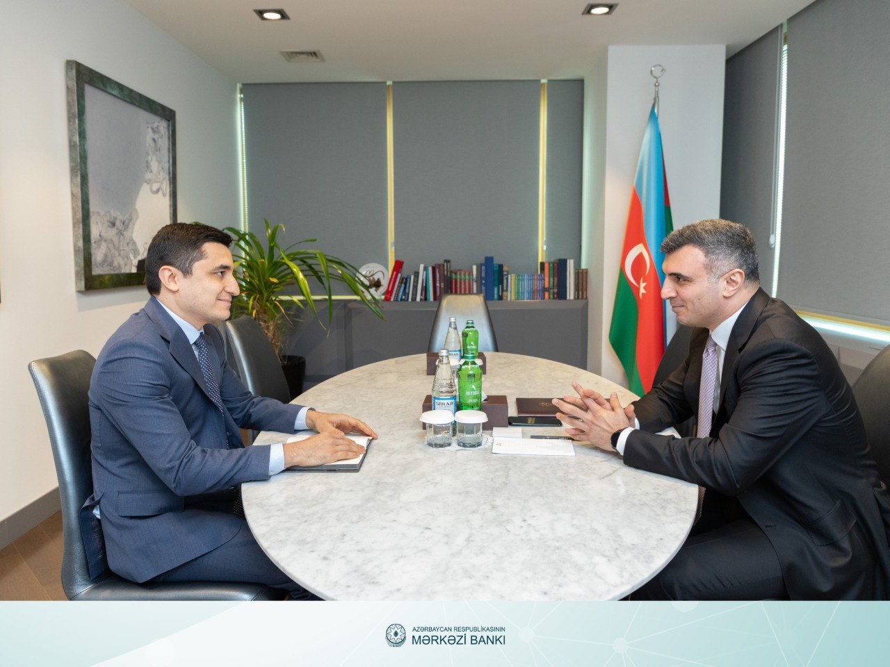 Azərbaycan Mərkəzi Bankının sədri Taleh Kazımov dördüncü “Yüksəliş” müsabiqəsinin qalibləri Sənan Mustafayev və İsmayıl Hüseynov ilə Mərkəzi Bankda həyata keçirilən mentorluq proqramının başa çatması münasibətilə növbəti görüş keçirib.