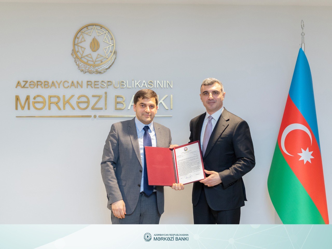 Azərbaycan Mərkəzi Bankının sədri Taleh Kazımov dördüncü “Yüksəliş” müsabiqəsinin qalibləri Sənan Mustafayev və İsmayıl Hüseynov ilə Mərkəzi Bankda həyata keçirilən mentorluq proqramının başa çatması münasibətilə növbəti görüş keçirib.