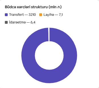 3 223,5 milyon manatlıq ümumi xərcin 99,6%-i — yəni 3 210,0 milyon manat — dövlət büdcəsinə transfert kimi köçürülmüşdür. Bu, ARDNF-nin dövlət maliyyəsindəki rolunun nə qədər dominant olduğunu bir daha təsdiqləyir: fond faktiki olaraq büdcənin həyati bir istinad nöqtəsinə çevrilmişdir.