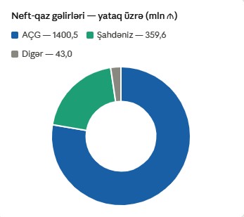 Neft yataqları üzrə bölgüdə AÇG bloku 1 400,5 milyon manat ilə ümumi neft-qaz gəlirlərinin 77,7%-ni təmin etmişdir. Şahdəniz yatağı isə qaz və kondensat üzrə 359,6 milyon manat — yəni 19,9% — pay tutmuşdur. Bu nisbət ARDNF gəlirlərinin hələ də əsasən AÇG-yə bağlı  olduğunu, Şahdənizin isə ikinci, lakin əhəmiyyətli mənbə rolunu qoruduğunu ortaya qoyur