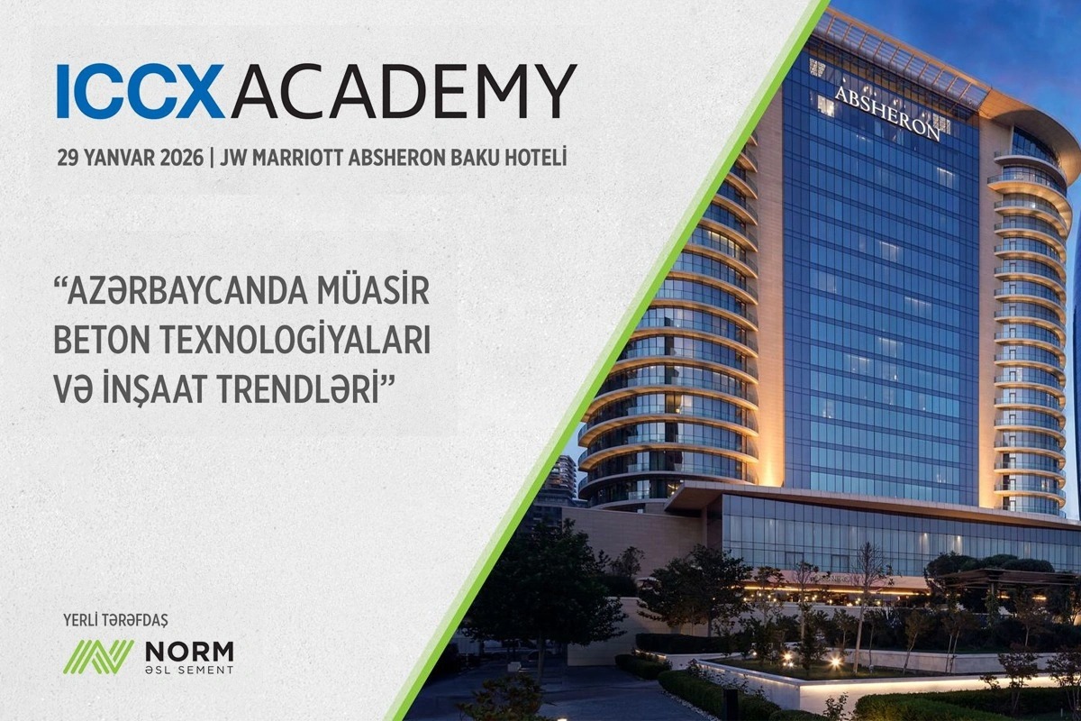 Bakıda beton sahəsinə həsr olunmuş beynəlxalq “ICCX Academy Baku” konfransı və sərgisi keçiriləcək. 29 yanvarda JW Marriott Absheron Baku Hotel-də təşkil olunacaq tədbirə Norm şirkəti ev sahibliyi edəcək. Bu platforma vasitəsilə Norm ölkənin inşaat sənayesinin peşəkarlarını bir araya gətirərək, yerli və beynəlxalq təcrübələrin qarşılıqlı paylaşılması üçün mühit yaradacaq.