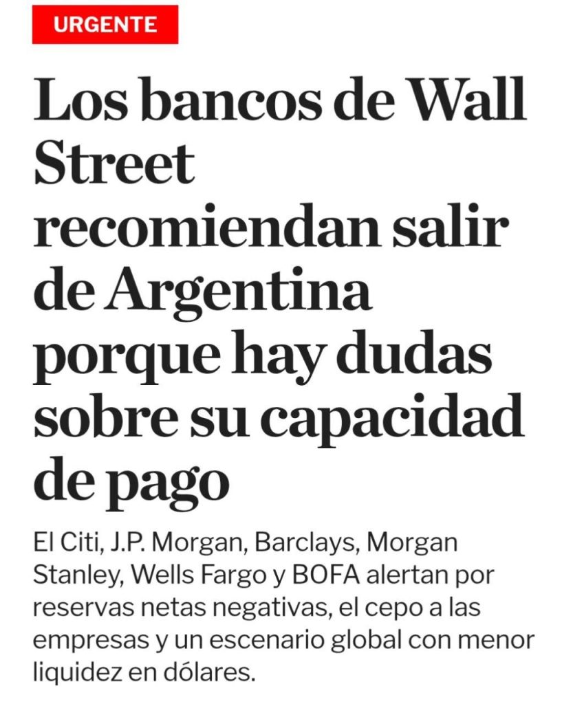 ABŞ-ın aparıcı maliyyə institutları Argentinanın maliyyə dayanıqlığı ilə bağlı narahatlıqlarını artıraraq investorları ölkədən vəsaitlərini çıxarmağa çağırır.